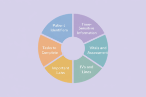 Use your brain sheet to give report to the next nurse. Everything they need to know about what happened during your shift is right there. No scrambling to remember details. No “um, let me check the chart.” You have it all.